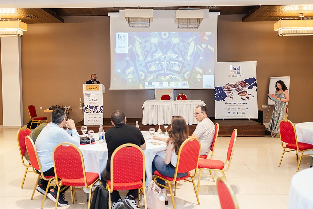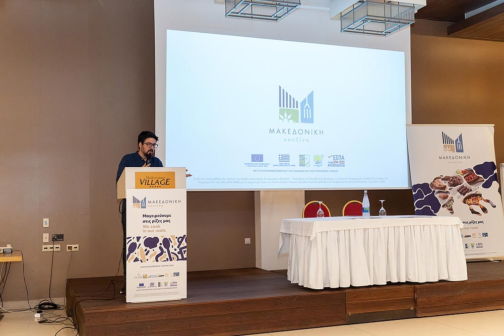 Στην εκδήλωση που απευθυνόταν στο κοινό, χαιρετισμό και μια σύντομη παρουσίαση του Σχεδίου Διατοπικής Συνεργασίας «Προβολή-Προώθηση της Μακεδονικής Κουζίνας» του Τοπικού Προγράμματος CLLD/LEADER έκανε ο κ. Κώστας Ζαπουνίδης, Επικεφαλής του Τμήματος Διαχείρισης Έργων και Προγραμμάτων της Πιερικής Αναπτυξιακής.